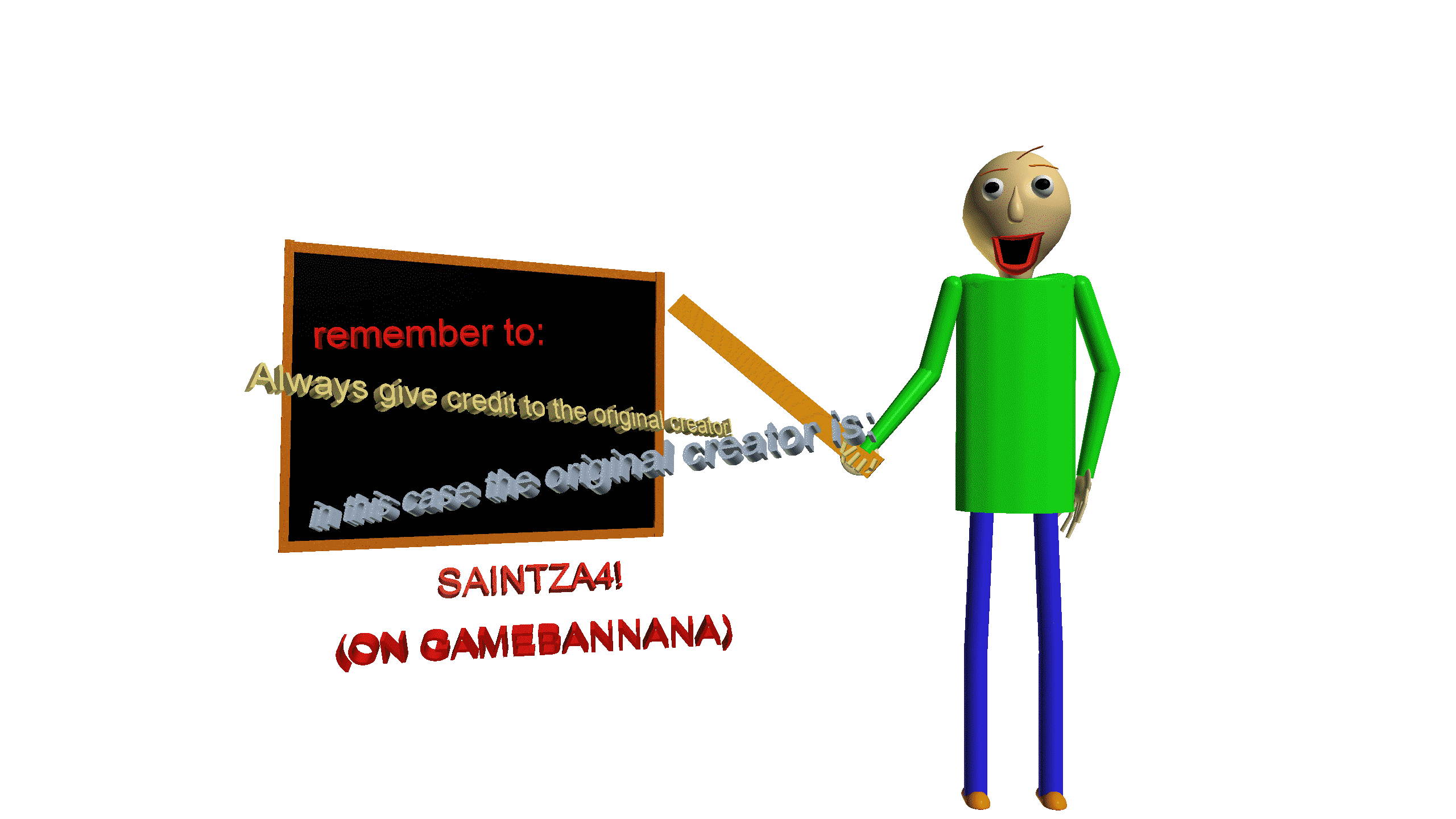 Oh Hi! Welcome to my Baldi Model, this baldi model somehow took only 2 days to make! But I wont complain But now you can enjoy this Good ol' Baldi Model! no not Big Ol' Boo-